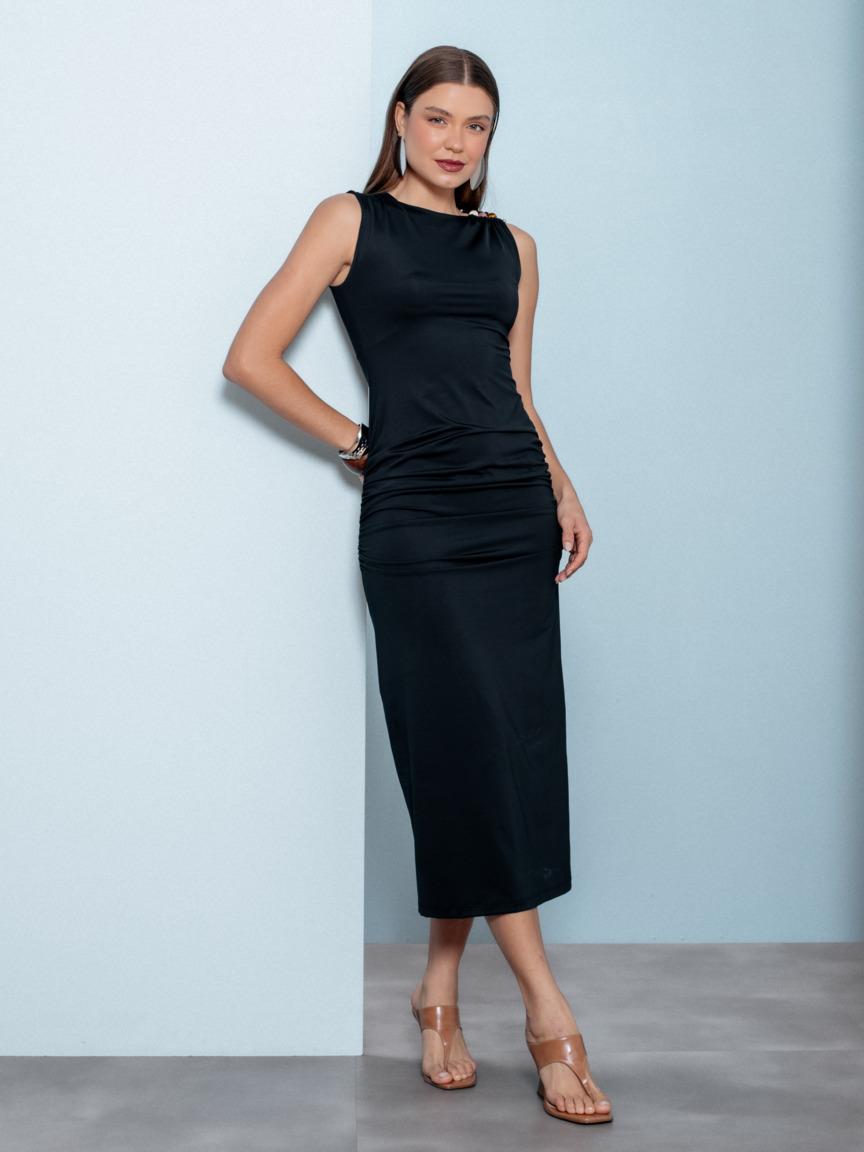 VESTIDO DRAPEADO FIVELA NO OMBRO