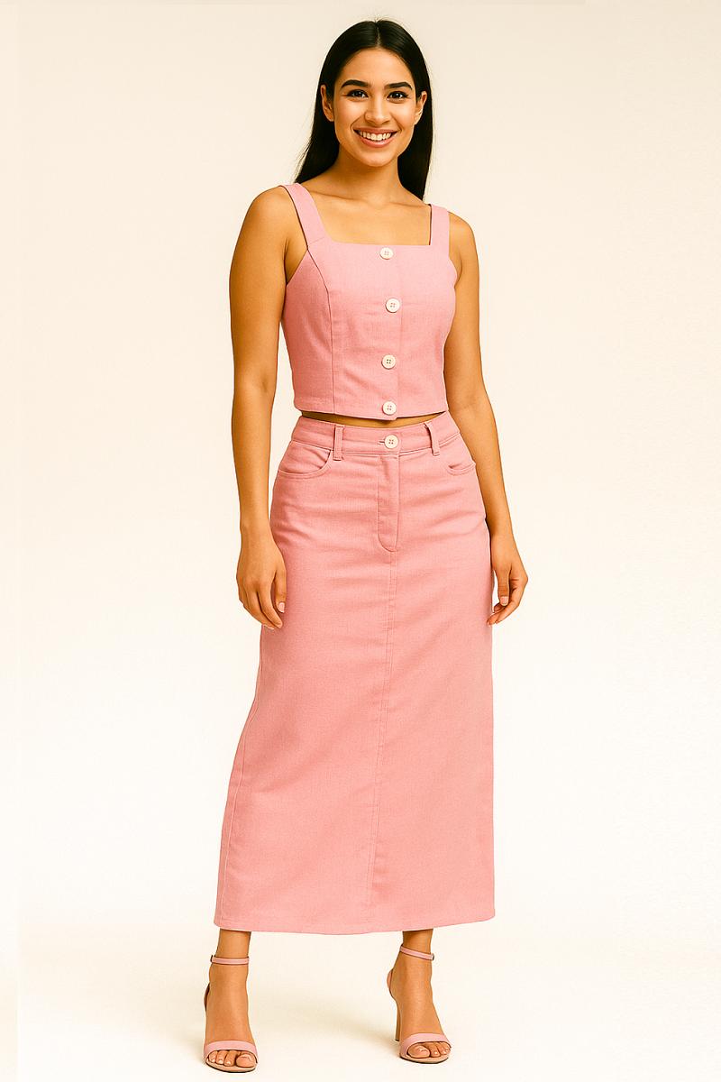 / CONJUNTO DE LINHO BLUSA E SAIA LÁPIZ FORRADO.