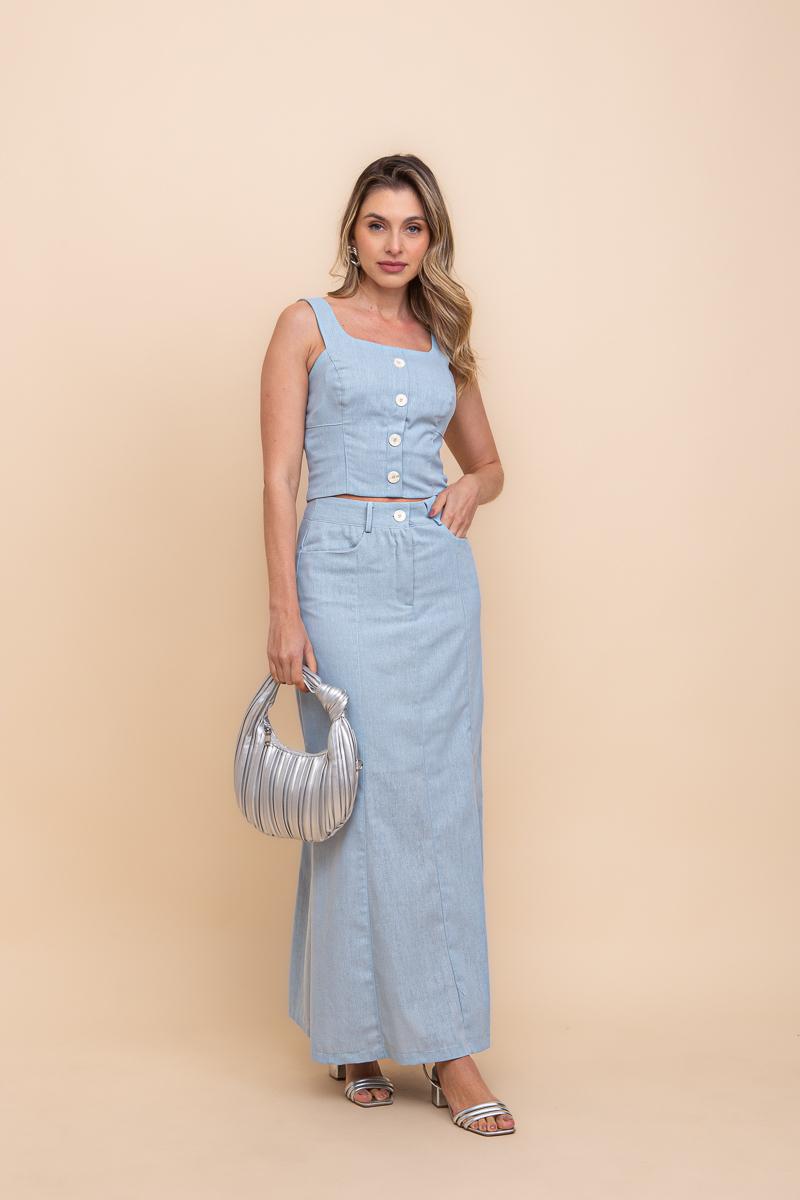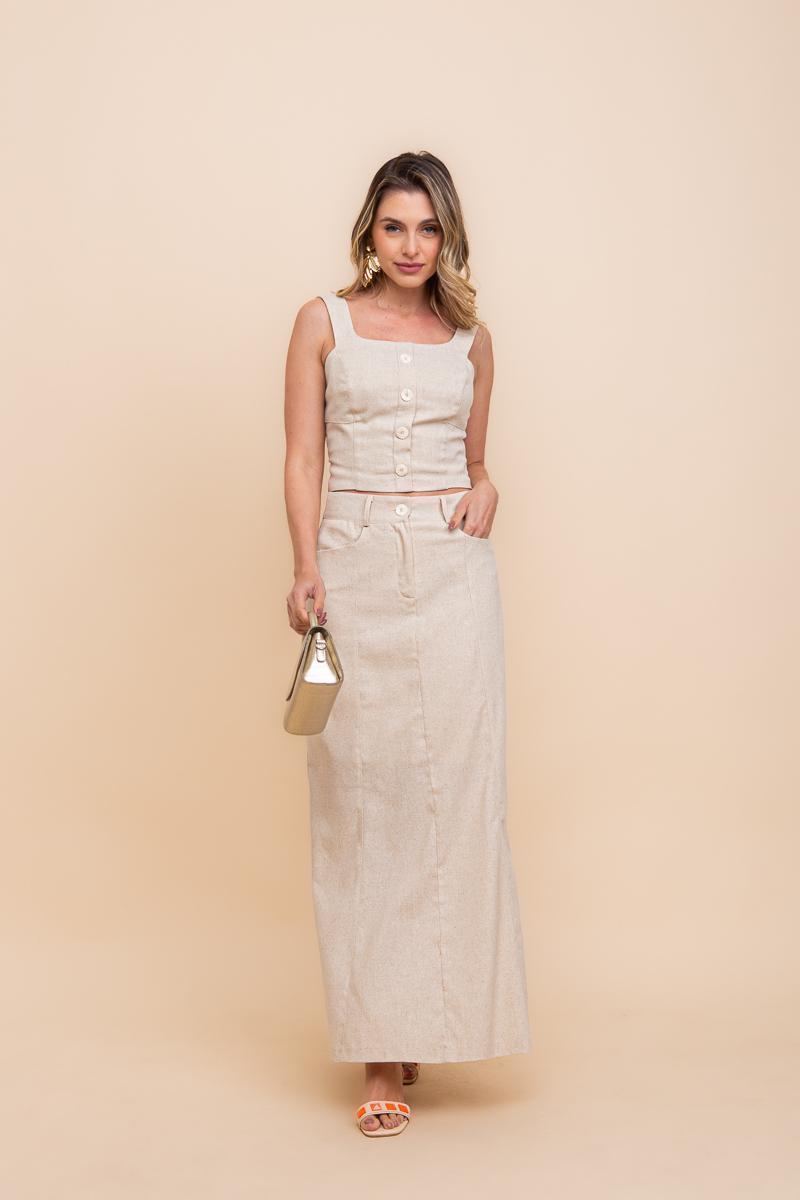 CONJUNTO DE LINHO BLUSA E SAIA