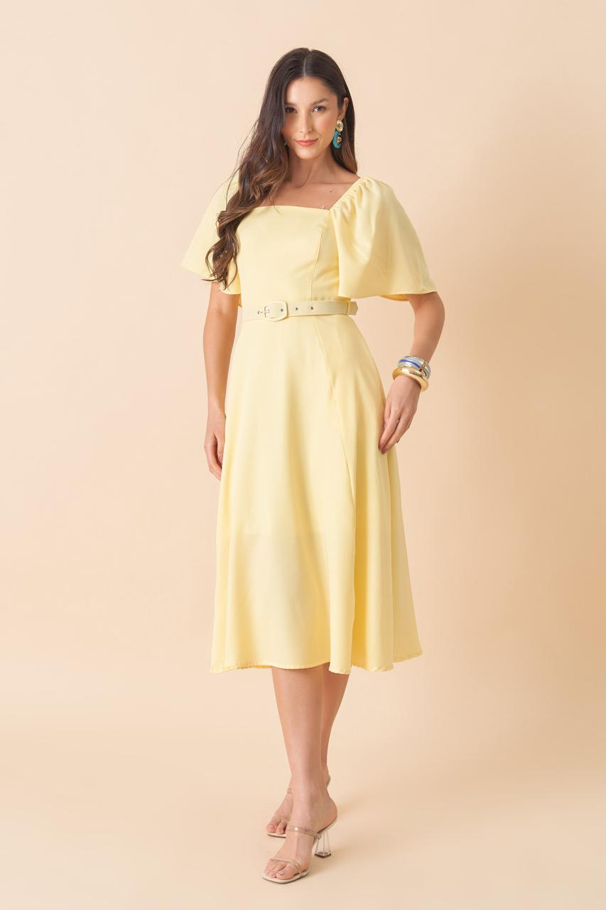 VESTIDO MIDI MANGA BUFANTE C/ CINTO FORRADO